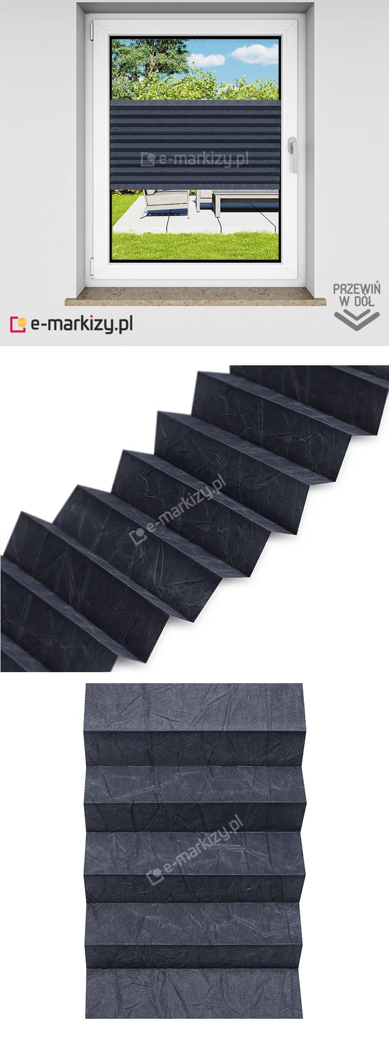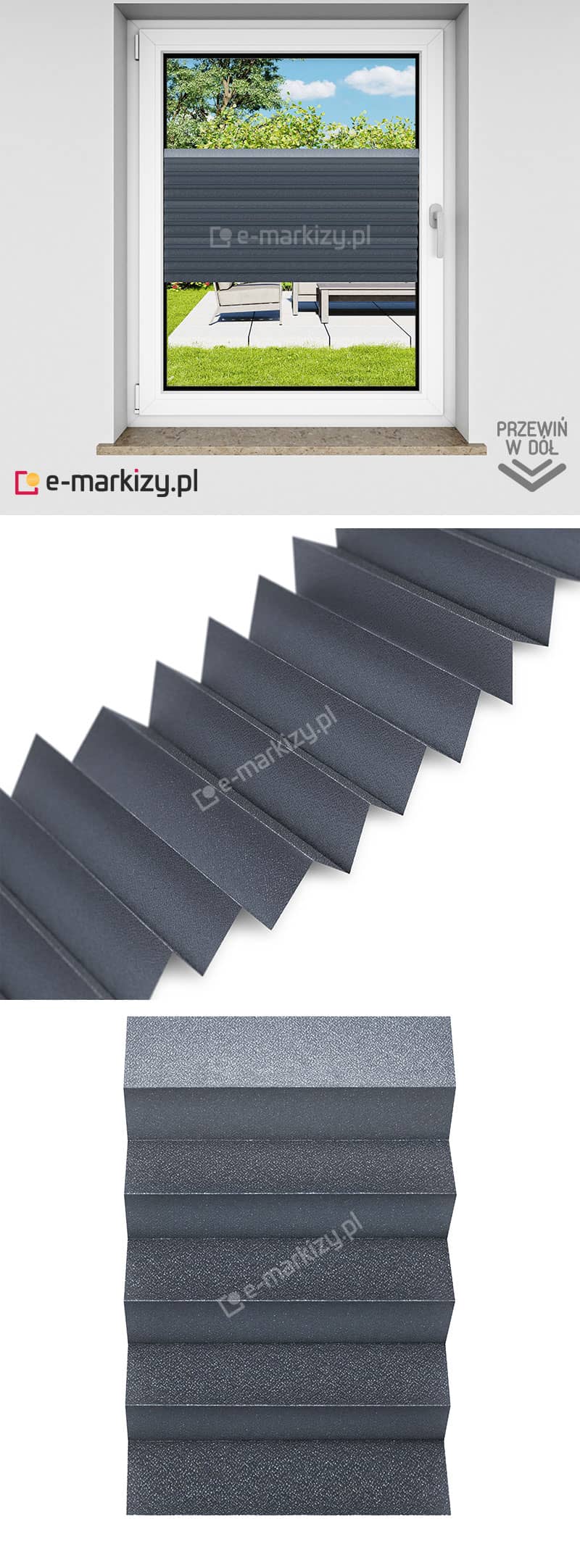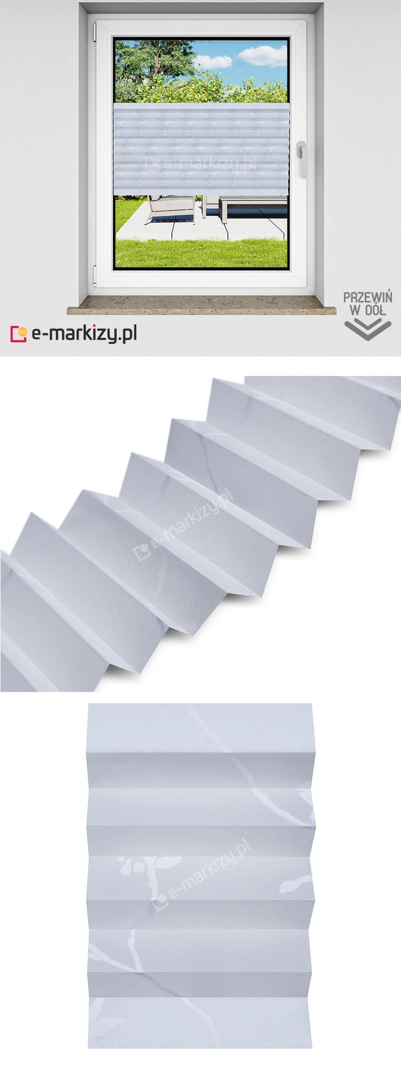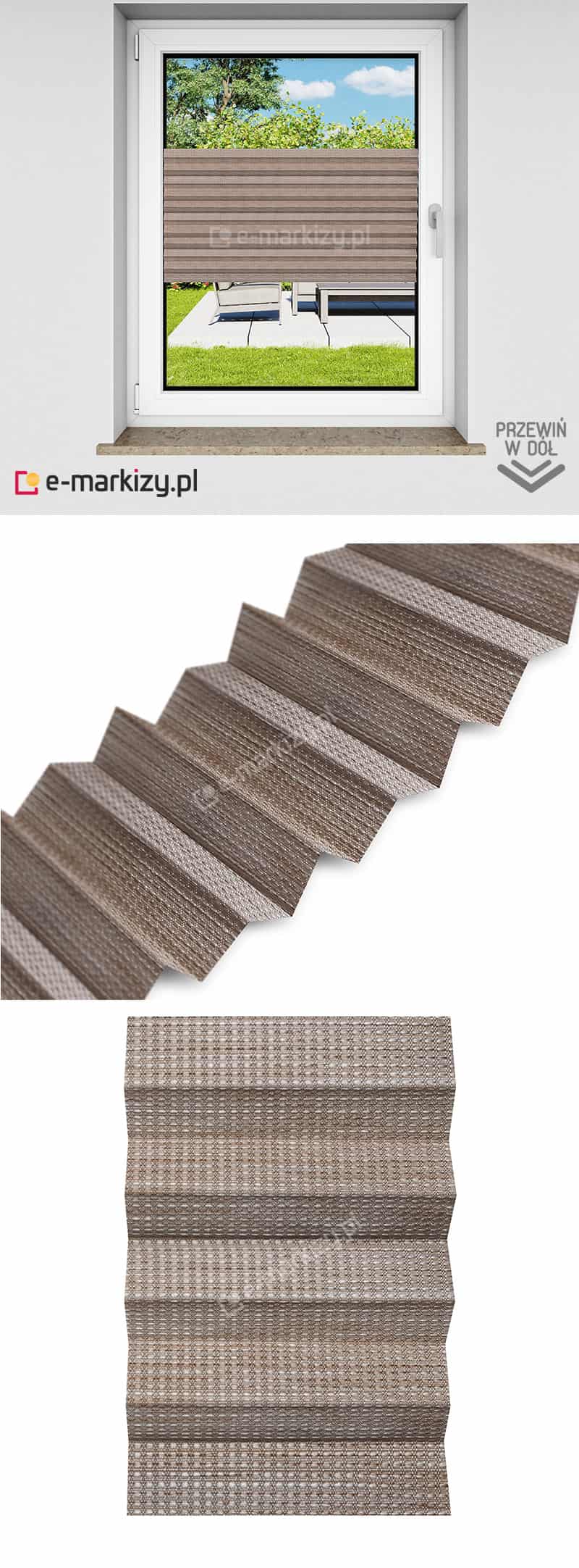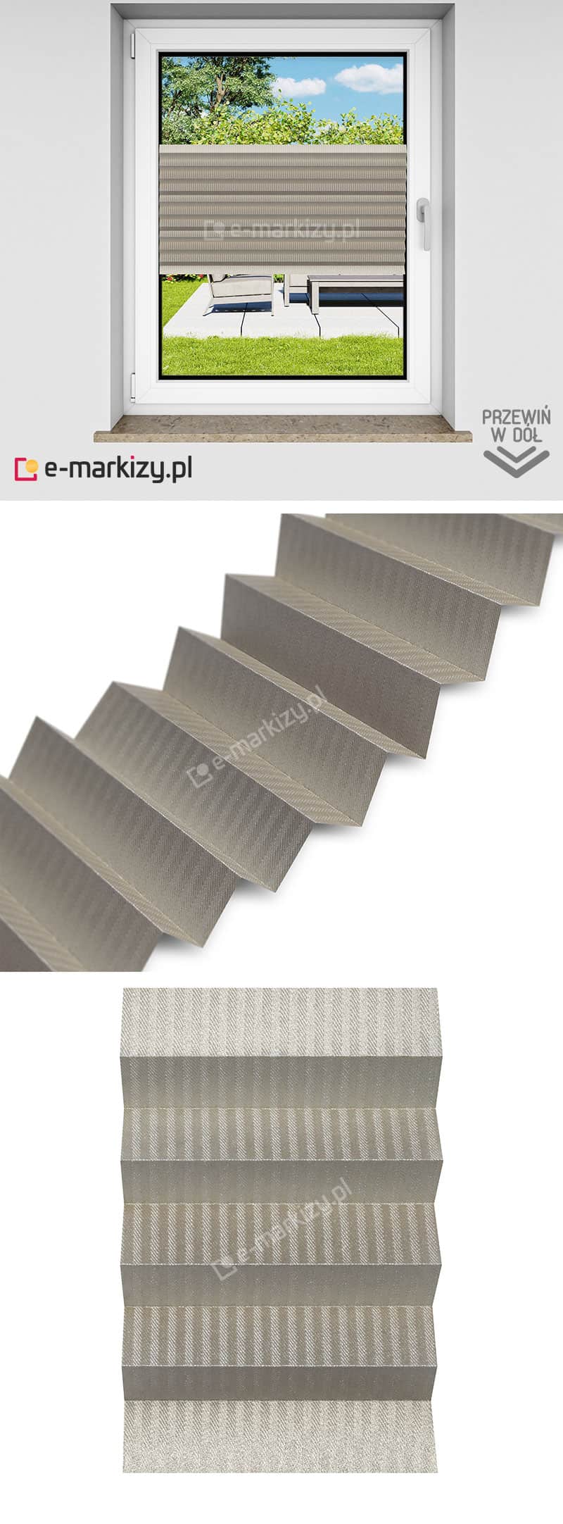 Ze względu na właściwości tkanin plisowanych, po zwinięciu mogą różnić się odcieniem od tkaniny rozwiniętej, nie stanowi to wady materiału.
