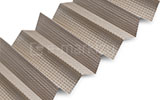 Wzornik kolorów tkanin do rolet plisowanych. Tkanina plisowana wykonana jest z poliestru o bardzo dobrych parametrach izolacji termicznej i przeciwsłonecznej – posiadamy szeroką gamę kolorów i wzorów. Większość tkanin pokryta jest z jednej strony powłoką “perłową”, która dodatkowo odbija promienie słoneczne. Ze względu na właściwości tkanin plisowanych, po zwinięciu mogą różnić się odcieniem od tkaniny rozwiniętej.