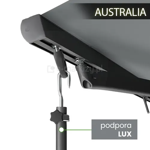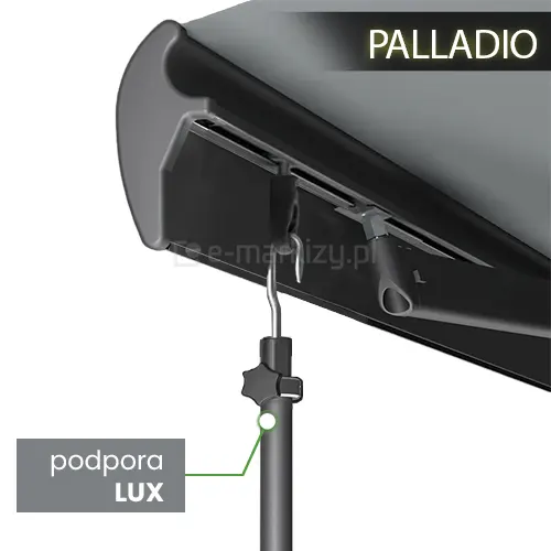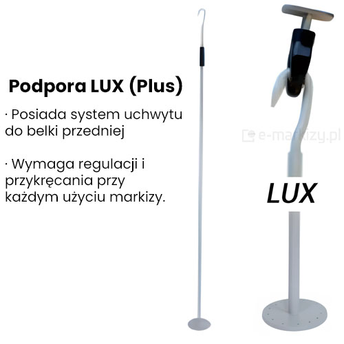 Podpora teleskopowa Plus/Lux do markiz posiada system uchwytu do belki przedniej.