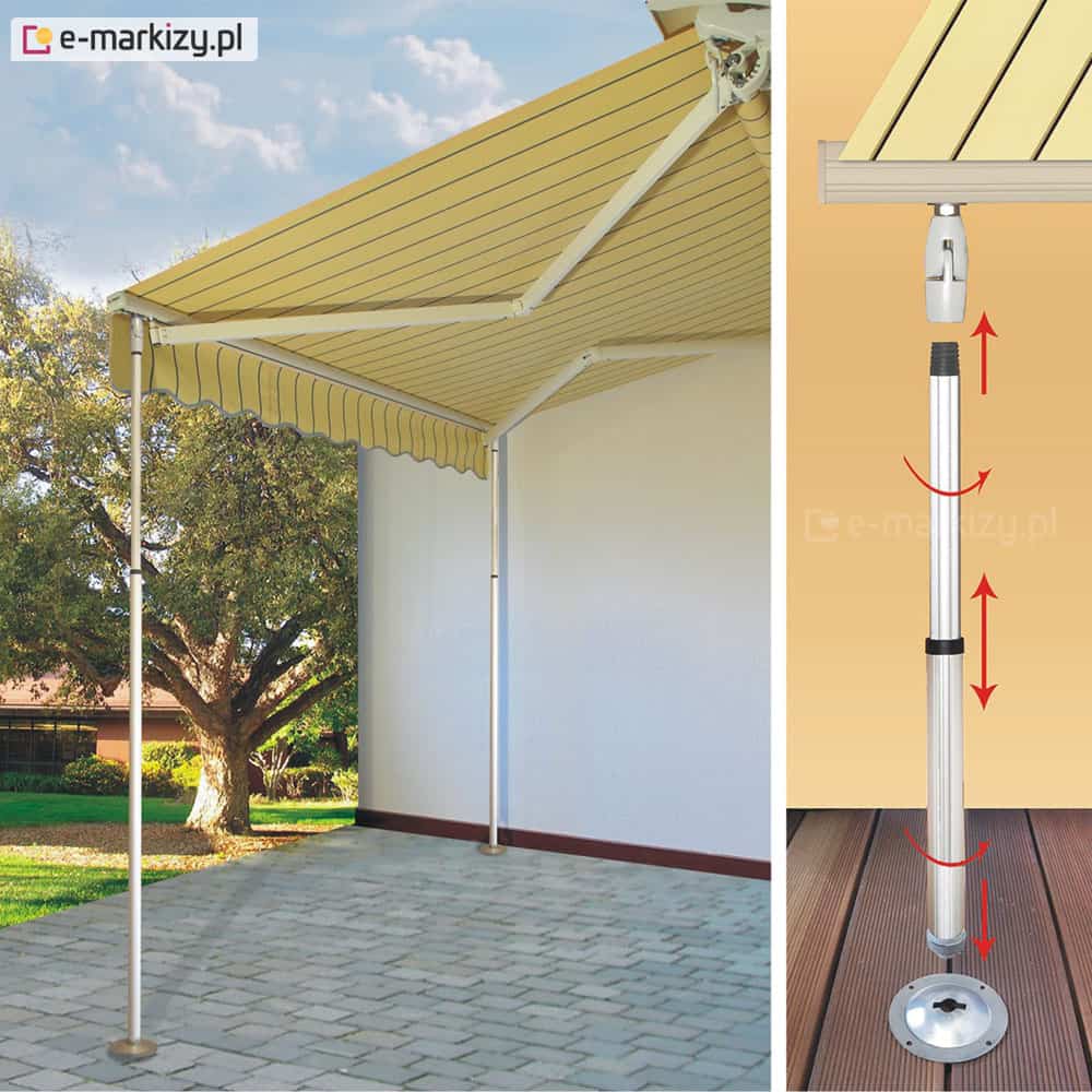 Podpory teleskopowe do markiz pozwalają na korzystanie z markizy nawet w trudnych warunkach atmosferycznych.