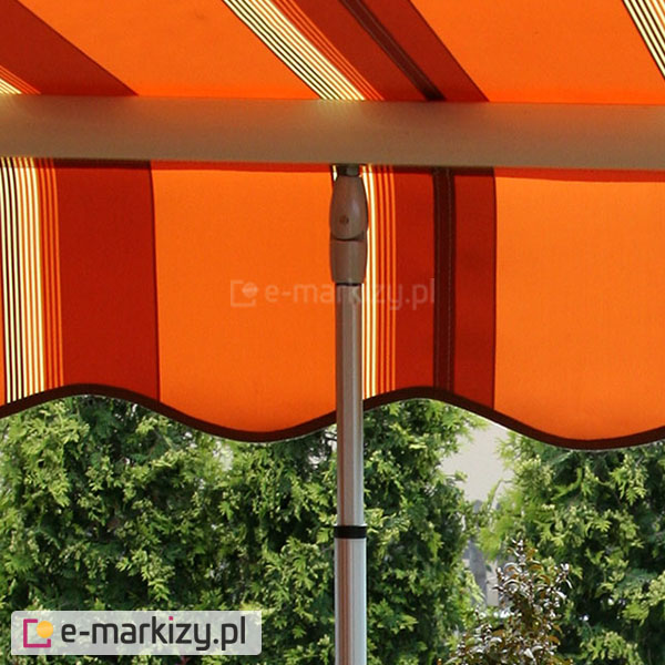 Podpora markizy zwiększa jej stabilność i niweluje wstrząsy powstałe przy podmuchach wiatru.