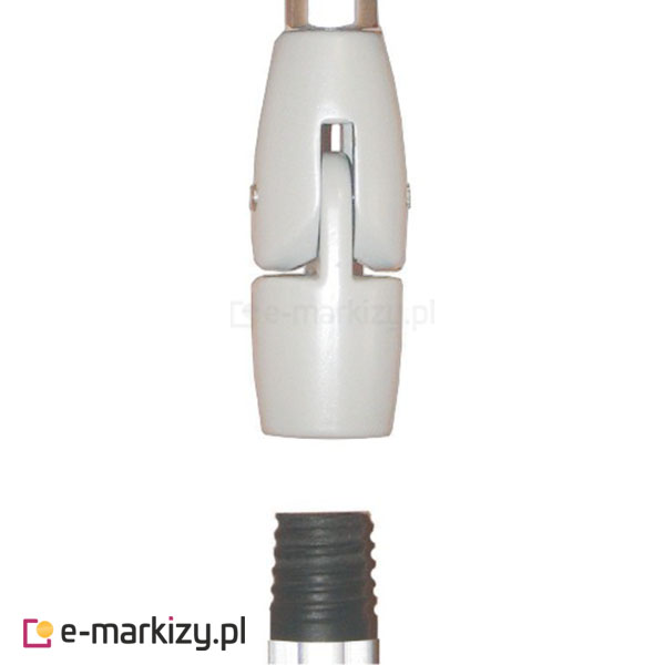 Podpora teleskopowa do markiz posiada system uchwytu do belki przedniej.