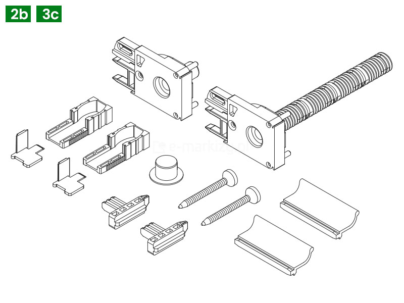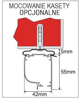 Wymiarowanie w przypadku montażu kasety za pomocą klipów montażowych 5mm: