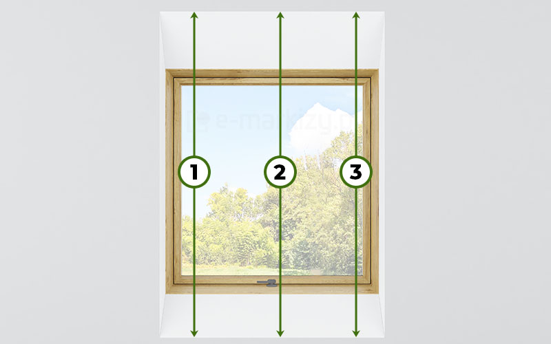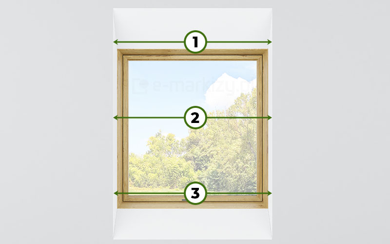 Wymiary należy ściągnąć najlepiej w 3 lub więcej miejscach (rysunki poniżej). Wnęka okienna jest zazwyczaj nierówna, dlatego należy podać najmniejszy zmierzony wymiar wnęki okiennej na zewnątrz okna.