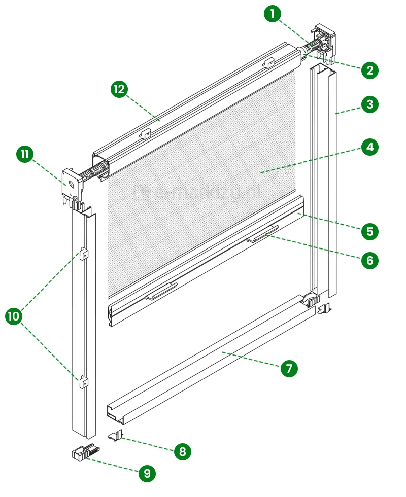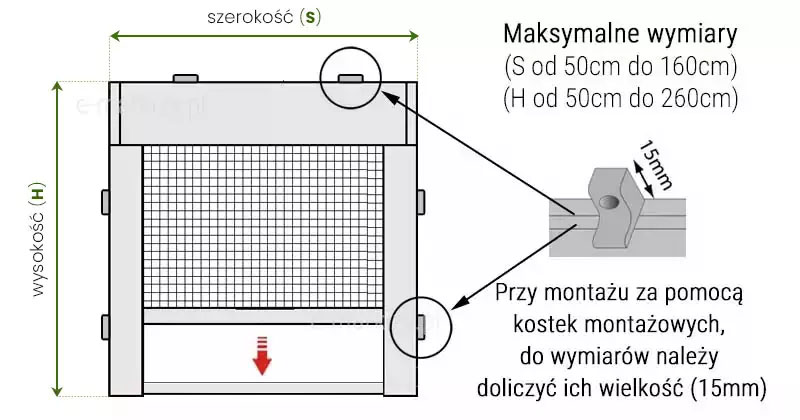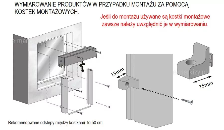 Rekomendowane odstępy między kostkami montażowymi moskitiery to 50cm