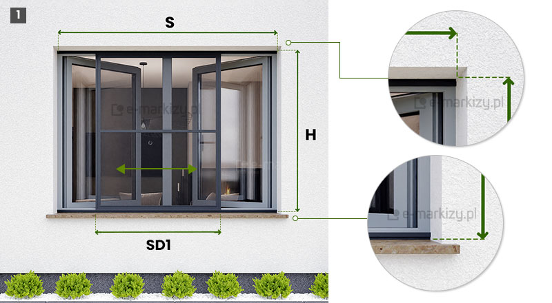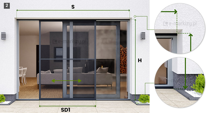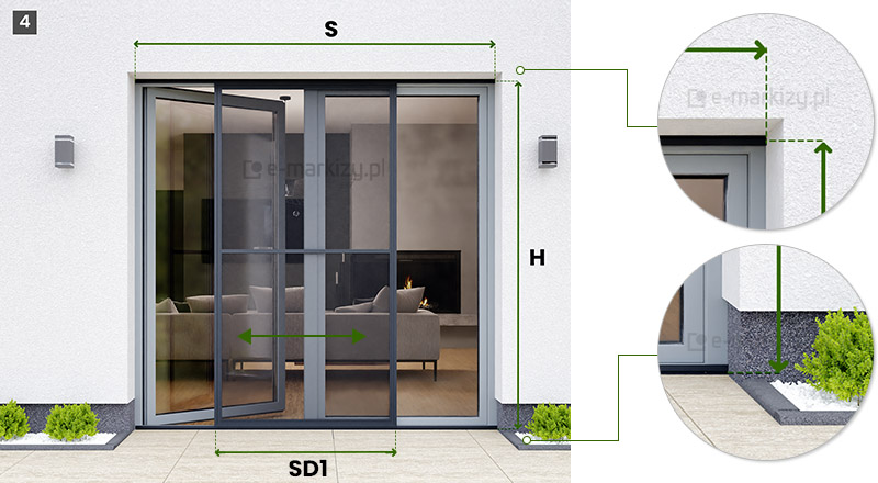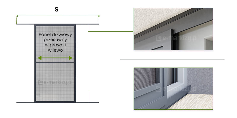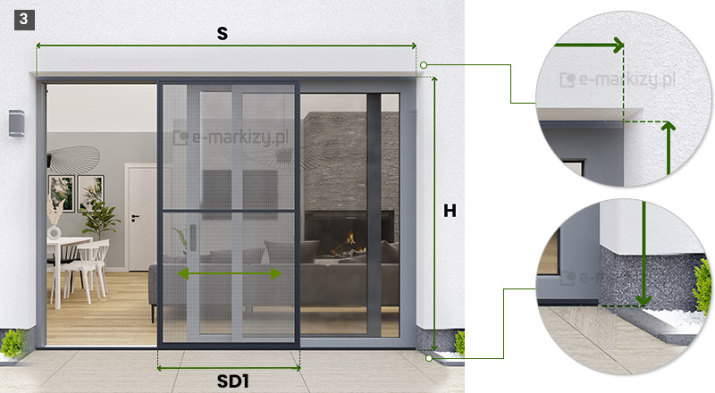 Slim – moskitiera drzwiowa-przesuwna - Pomiar, Moskitiera slim pomiar rzut z góry, moskitiery drzwiowe wymiarowanie, Moskitiera slim wymiarowanie, sposób pomiaru moskitiery, wykonanie pomiarów pod moskitierę, Moskitiera slim pomiar i wycena