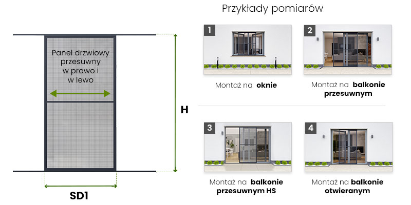 Szpros (poprzeczka) moskitiery wzmacnia całą konstrukcję, standardowo umieszczony jest na wysokości 100cm, ale może on być zamontowany na dowolnej wysokości. Do szprosu montowana jest klamka. Odległość szprosu na skrzydle mierzymy od dolnej krawędzi skrzydła moskitiery (bez dolnej prowadnicy) do środka poprzeczki – szprosu.