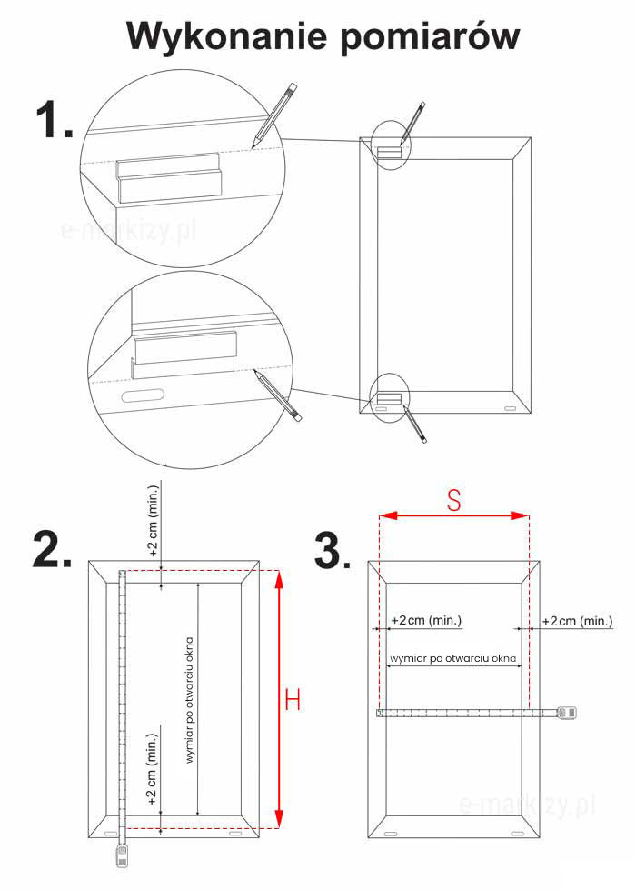 We wszystkich 3 wariantach okien, prowadnicę górną S przykręcamy w ten sam sposób: – przykręcamy bezpośrednio do górnej części ramy okna. Niezbędna ilość miejsca na ramie to min. 2cm