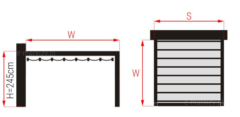 S –Szerokość pergoli od 4,61m do 6,6 m (2 moduły)