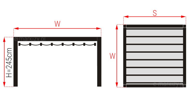 S –Szerokość pergoli od 1,80m do 4,6 m (1 moduł)