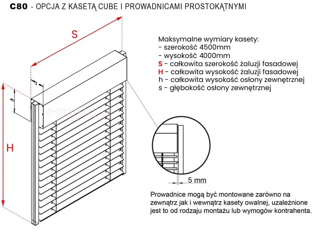 Pomiar żaluzji fasadowych C80 Cube - Żaluzja c80 cube szczegóły pomiaru, jak mierzyć żaluzje fasadowe, Żaluzje c80 cube wymiarowanie, pomiar żaluzji fasadowych selt