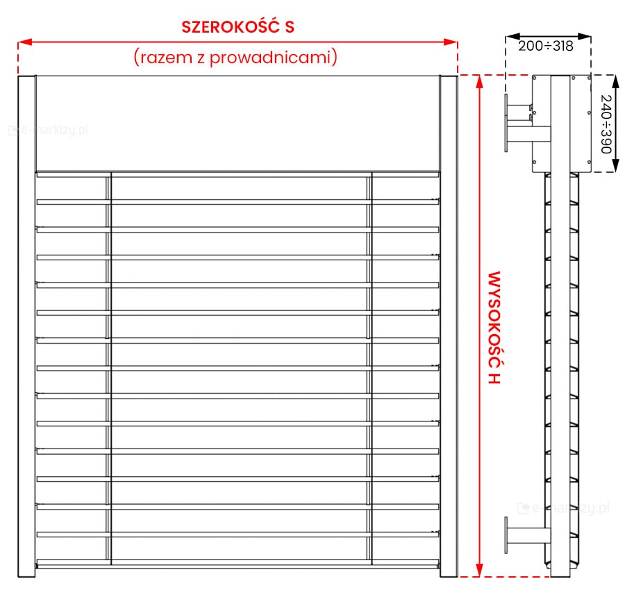 S – szerokość całkowita żaluzji