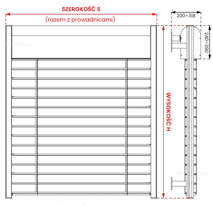 S – szerokość całkowita żaluzji