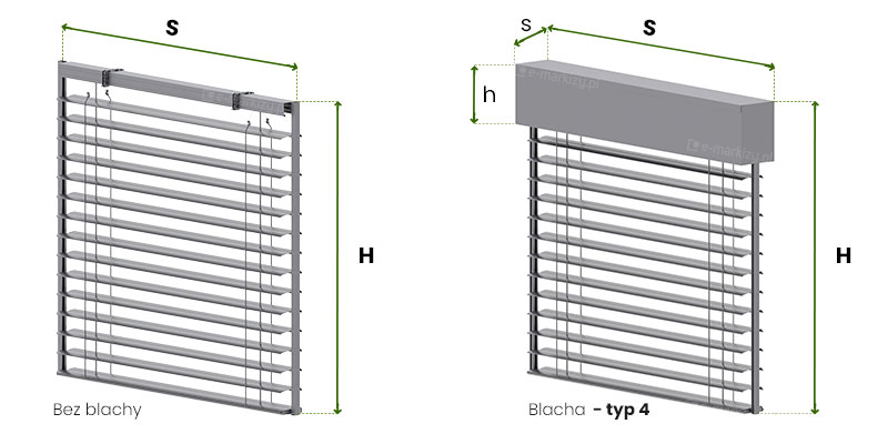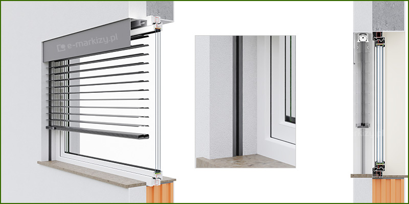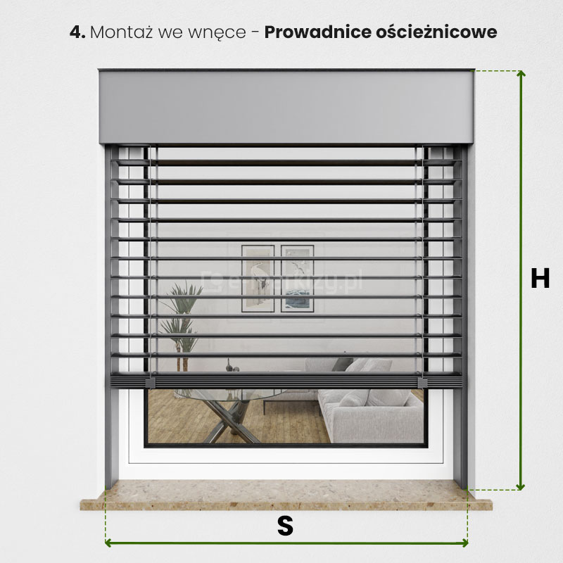 4 – przykład Pomiaru – prowadnice ościeznicowe. Montaż we wnęce, prowadnice do wnęki okna, blacha zabudowana lub niezabudowana