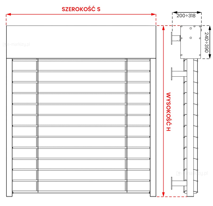 S – szerokość całkowita żaluzji