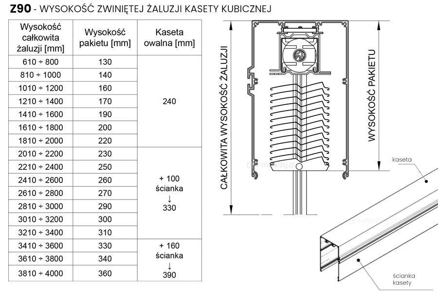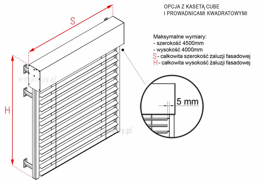 Pomiar żaluzji fasadowych Z90 Cube - Żaluzja z90 cube szczegóły pomiaru, sposób pomiaru żaluzji, żaluzja z90 pomiar, Żaluzje Z90 CUBE wymiarowanie, jak mierzyć żaluzje z prowadzeniem listwowym