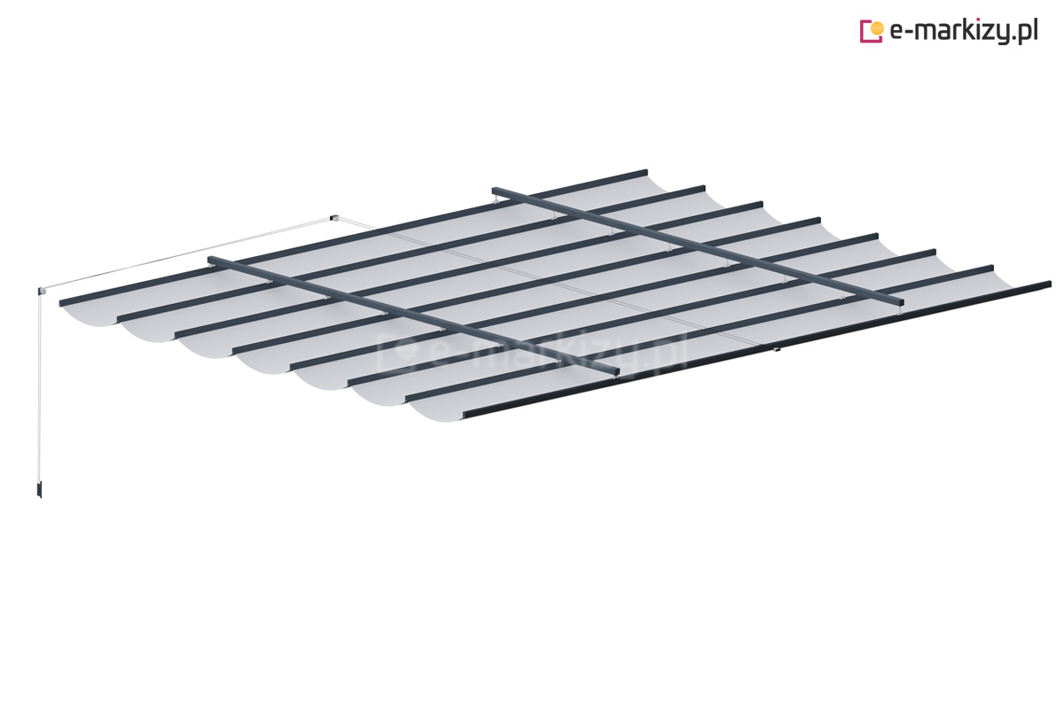 Dach rzymski Silva może być wykorzystany między ścianami lub między belkami pergoli, a także podwieszony na prowadnicy. Sterowana manualnie lub automatycznie pergola, wykonana z ekstrudowanych profili aluminiowych jest trwała i stabilna – odporna na wiatr. Tkanina zamocowana do belek przeciw-wietrznych, układa się w dekoracyjne fale jak klasyczny dach rzymski.