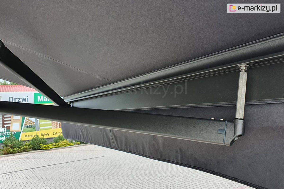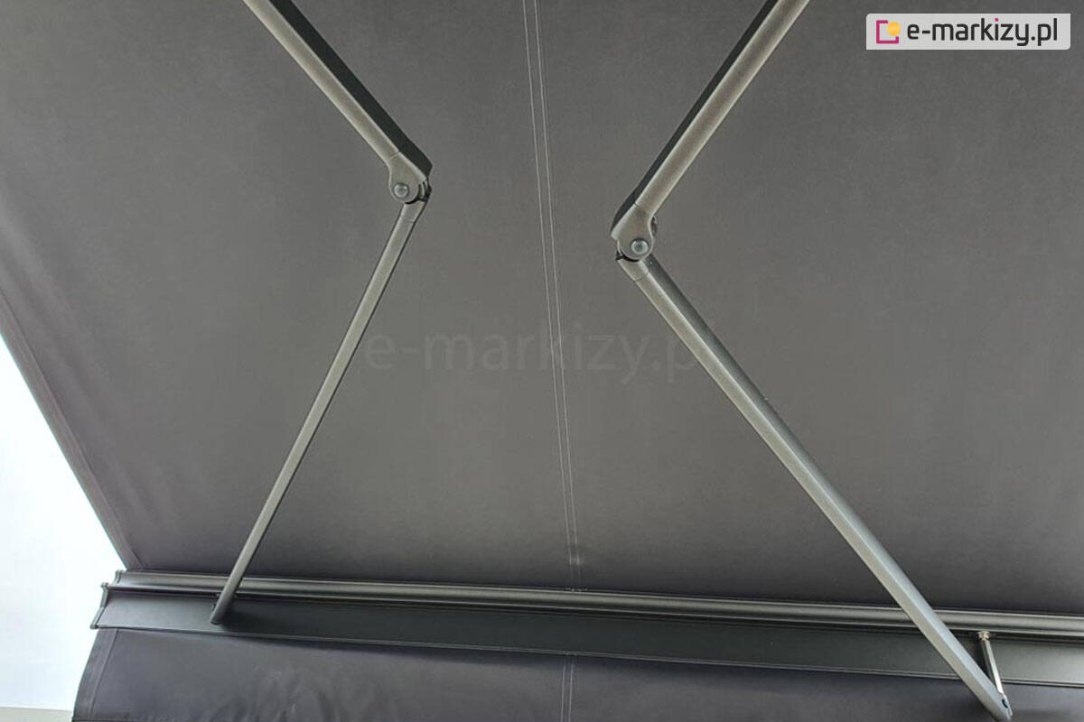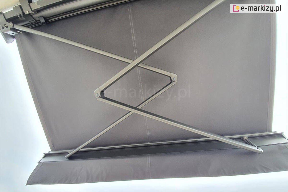 Zastosowanie ramion krzyżowych w markizach pozwala na uzyskanie większego wysięgu niż przy standardowej konfiguracji markizy.
