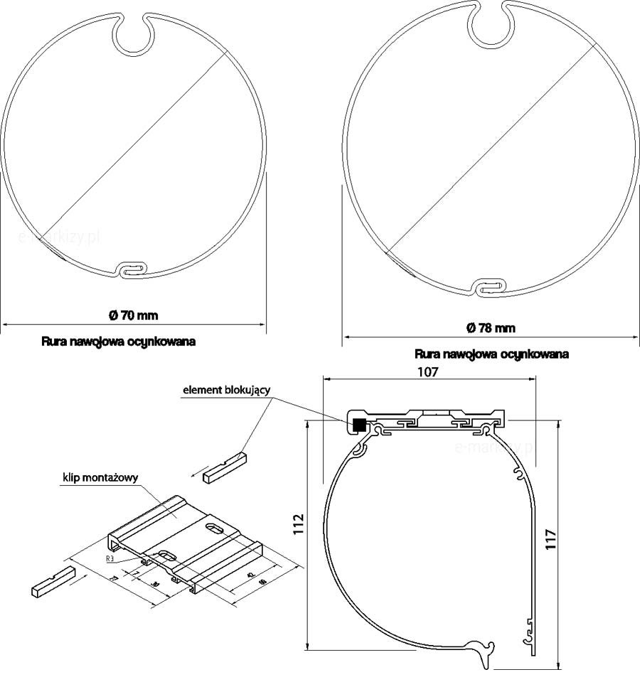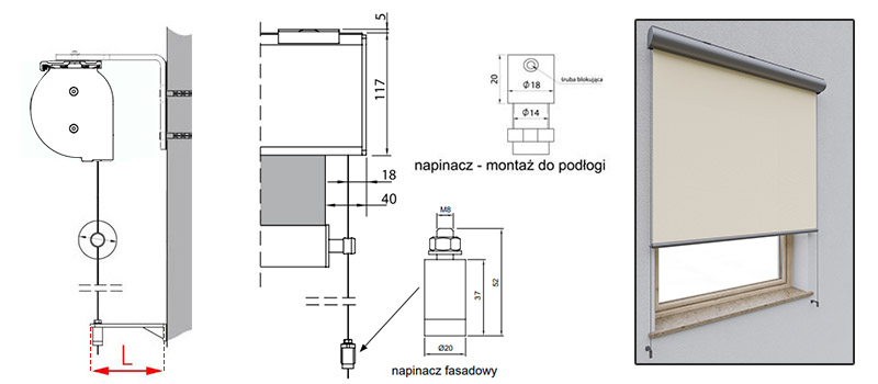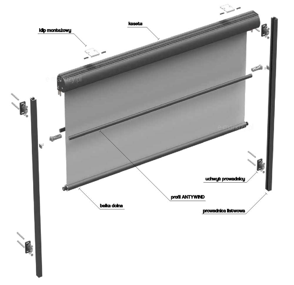 – Kaseta z ekstrudowanego aluminium chroniąca tkaninę