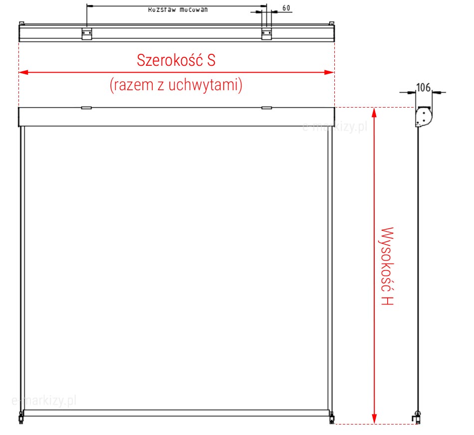 – Opcjonalnie profil antywind redukujący deformacje tkaniny pod naporem wiatru (przy szerokości wyrobu do 3 m).