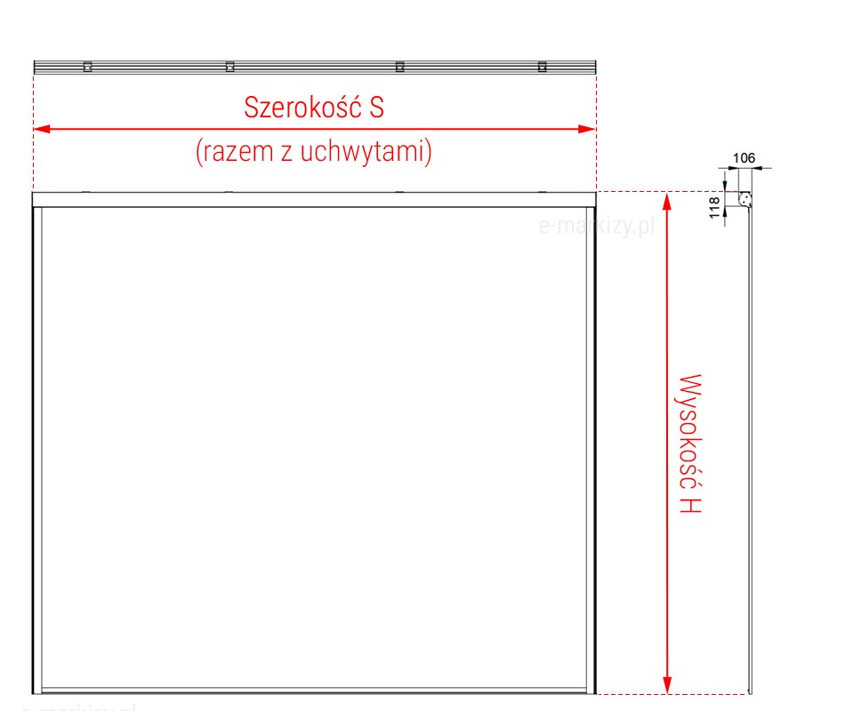 Szerokość S – jest to szerokość całkowita łącznie z uchwytami – do 450cm
