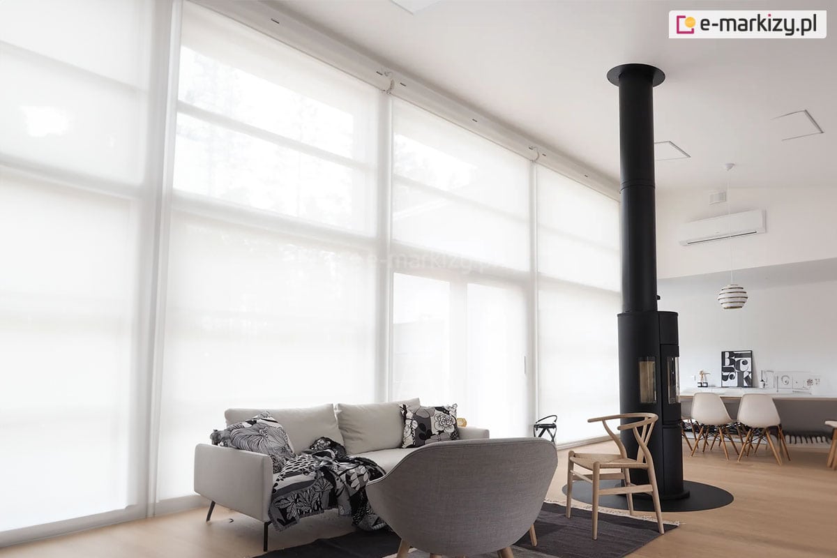 Rolety screenowe do powierzchni pionowych to najlepsze rozwiązanie do zachowania stałej temperatury pomieszczeń nasłonecznionych. Konstrukcja refleksoli może być lakierowana na dowolny kolor z palety RAL. Dostępna jest szeroka gama tkanin o różnych właściwościach odbijających światło słoneczne.