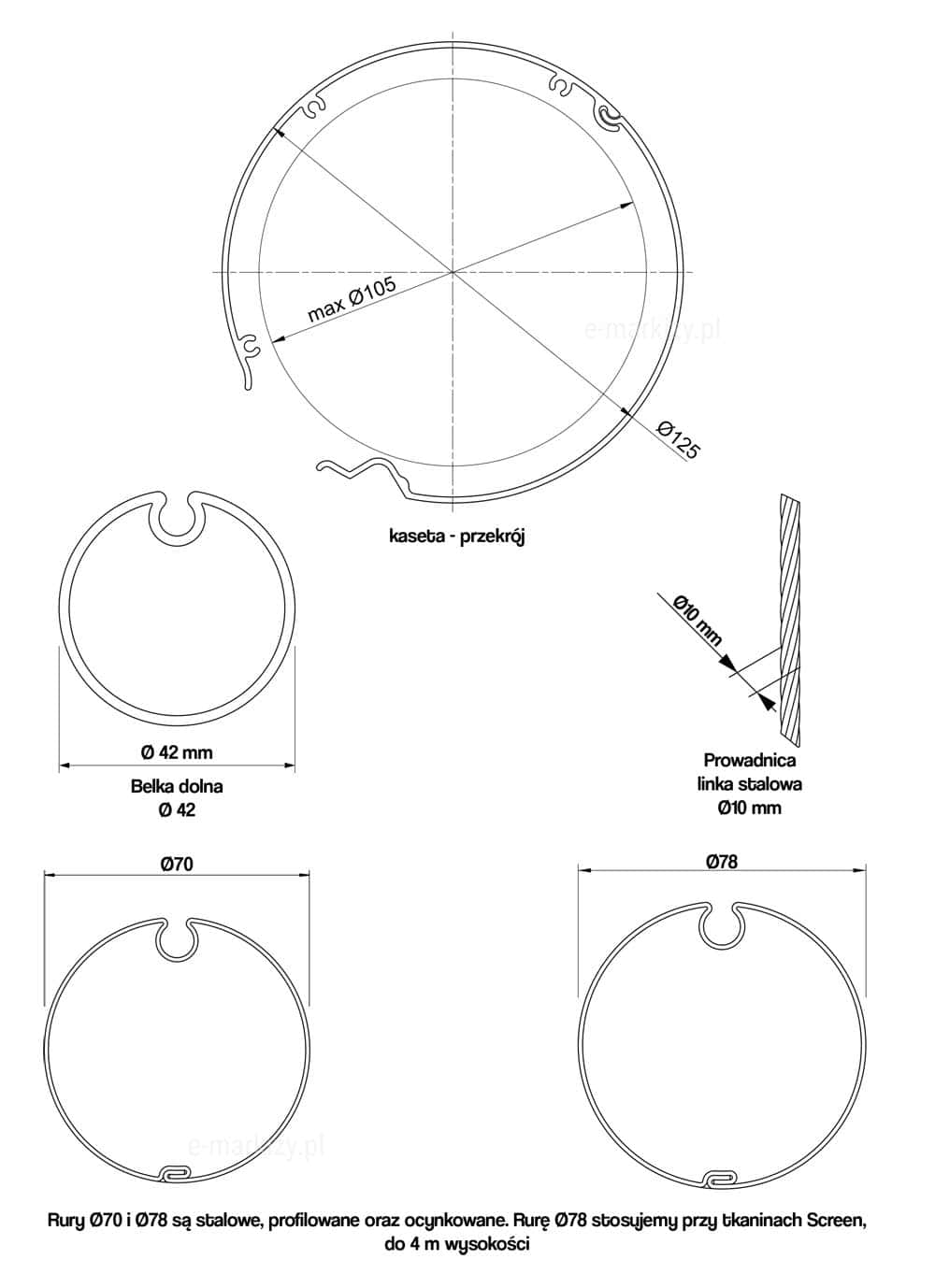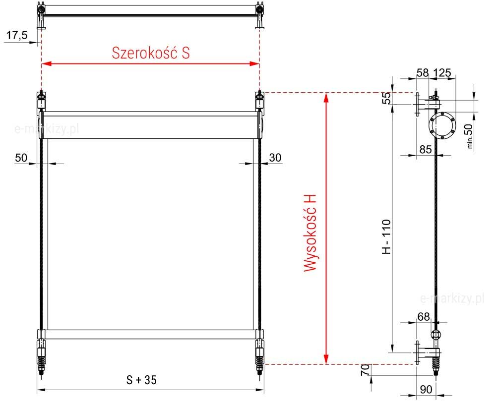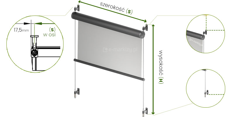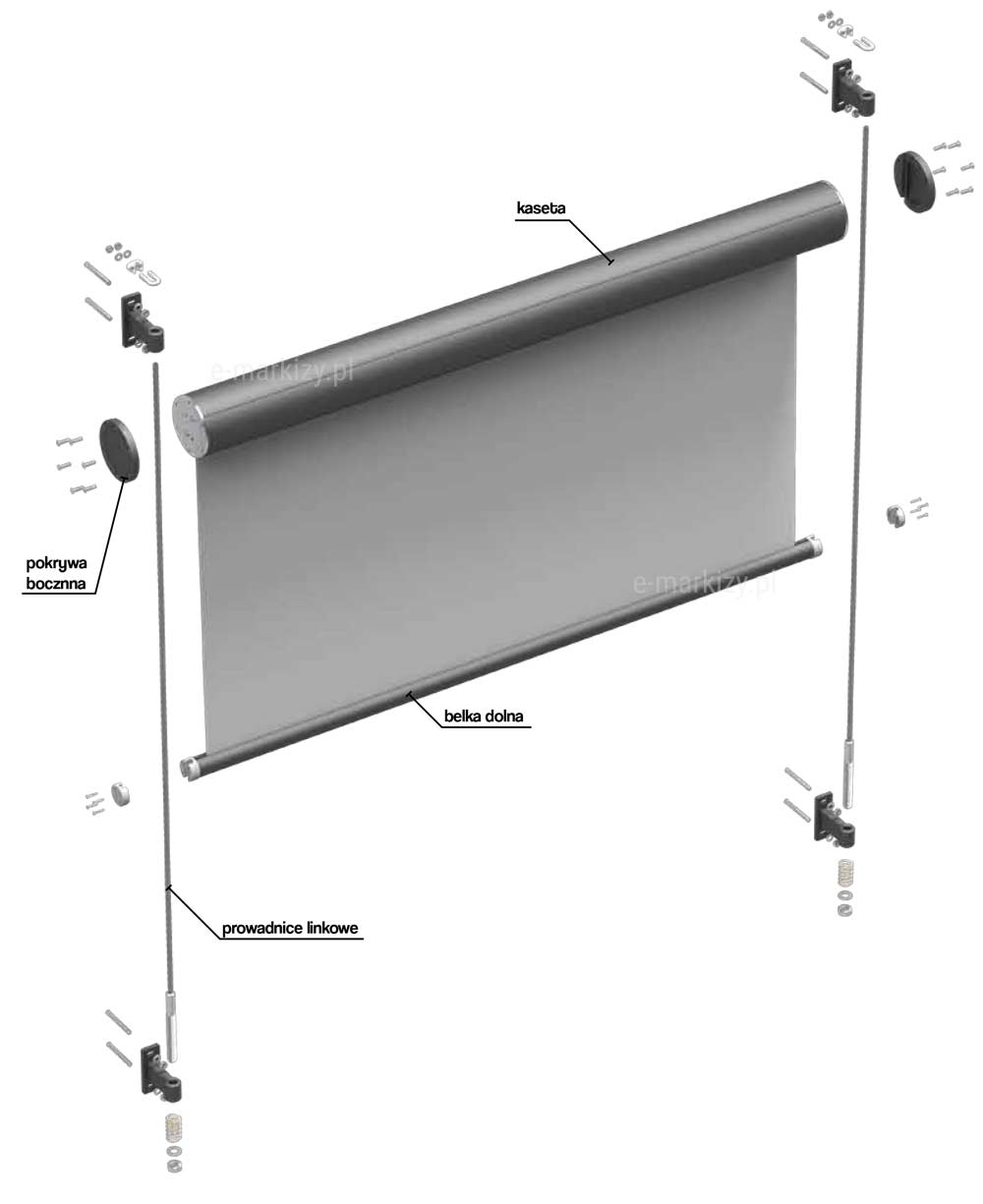 – Kaseta mocowana na linach, stanowiących wraz z uchwytami element nośny systemu