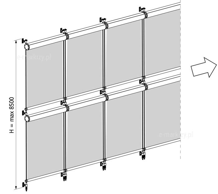 Ochrona przeciwsłoneczna i zacienianie pionowych otworów okiennych , fasad, przeszkleń. Przeznaczona na zewnątrz pomieszczeń.