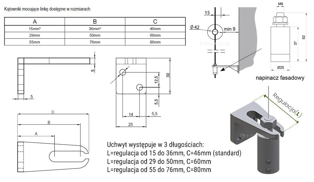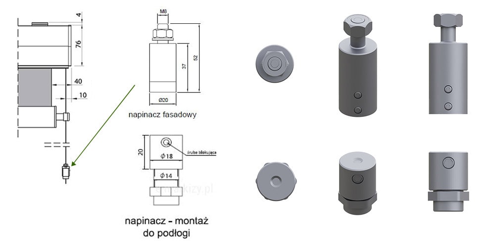 – Aluminiowe prowadnice ekstrudowane lub nierdzewne prowadnice linkowe.
