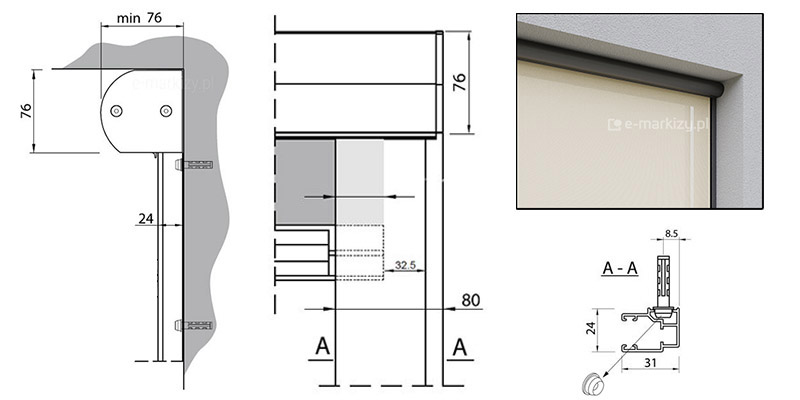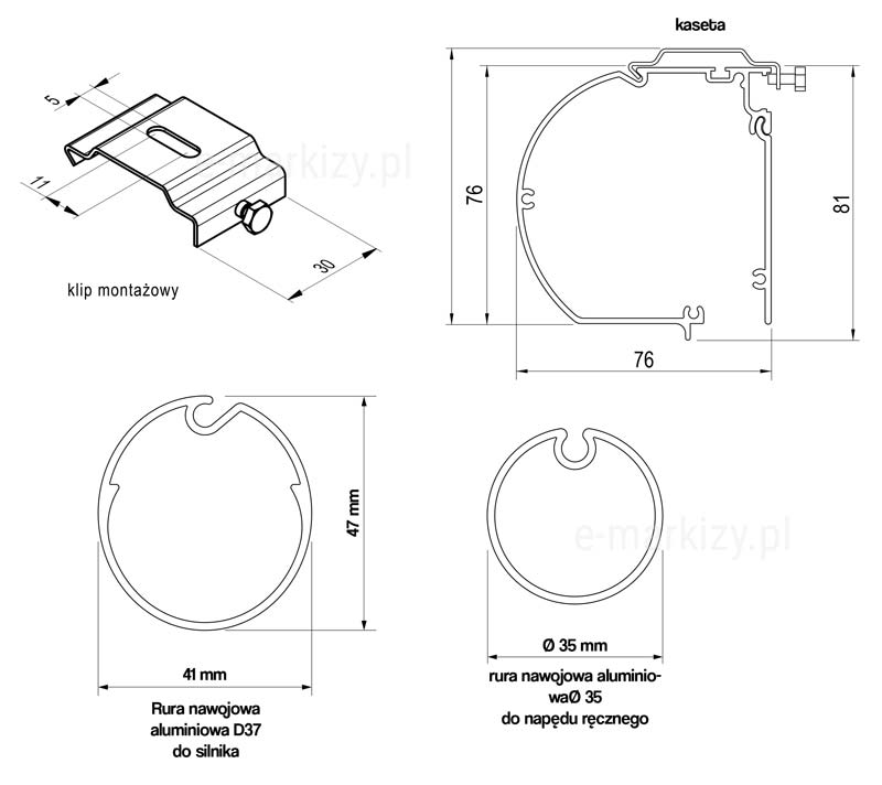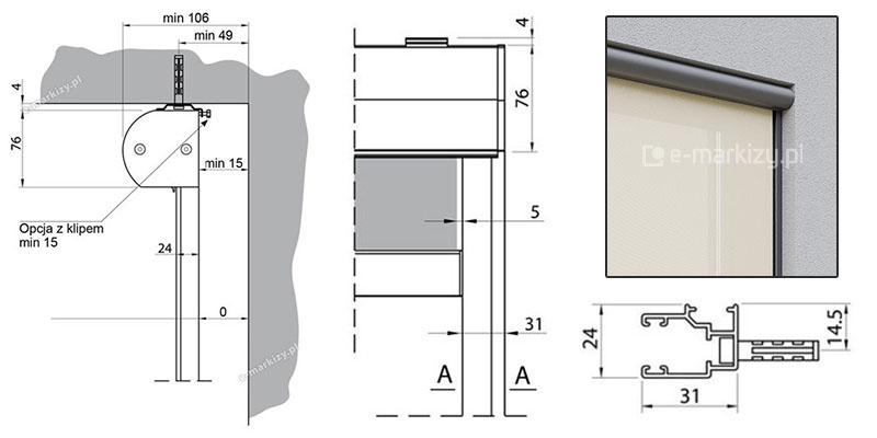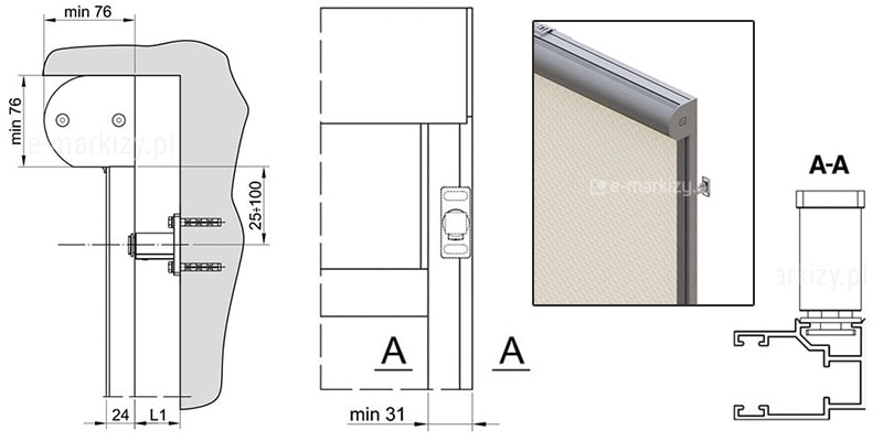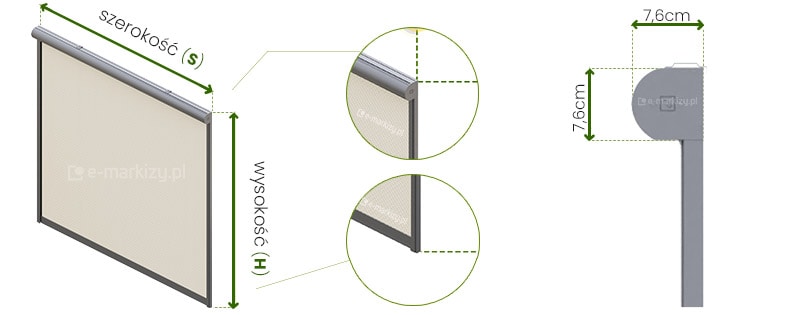 – Kaseta z ekstrudowanego aluminium chroniąca tkaninę