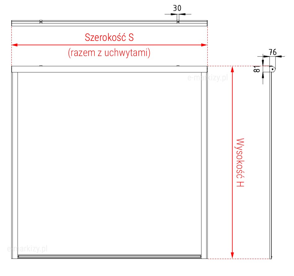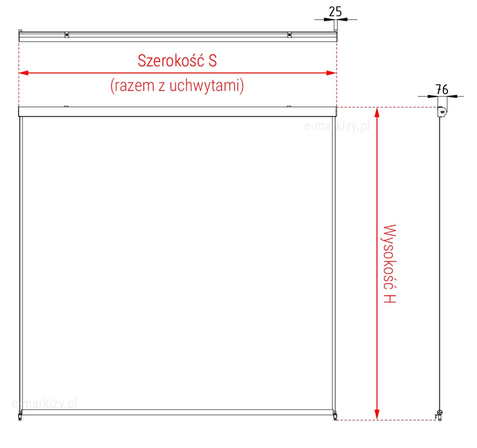 Szerokość S – jest to szerokość całkowita łącznie z uchwytami – do 260cm