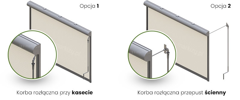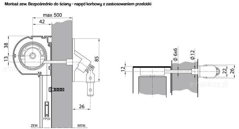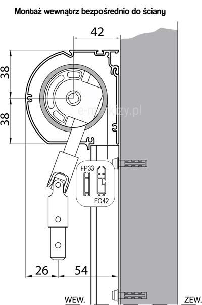 Montaż zewnętrzny do ściany – napęd ręczny z przelotką