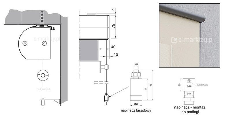 Refleksol 76 - Dane Techniczne - Refleksol 76 montaż wnękowy, prowadnice aluminiowe, montaż do wnęki, Refleksol 76 montaż sufitowy linki, prowadzenie linkowe, montaż do sufitu, Refleksol 76 selt, komponenty refleksola, uchwyt montażowy, kaseta refleksola, prowadnica tkaniny, belka dolna, uchwyt prowadnicy, Refleksol 76 kątownik italia selt, montaż zewnętrzny refleksola, Refleksol 76 montaż sufitowy wewnątrz budynku, Refleksol 76 montaż ścienny wewnątrz budynku, Refleksol 76 montaż wnękowy wewnątrz budynku, Refleksol 76 montaż ścienny prowadnice aluminiowe, Refleksole 76 uchwyt prowadnicy typ 3,