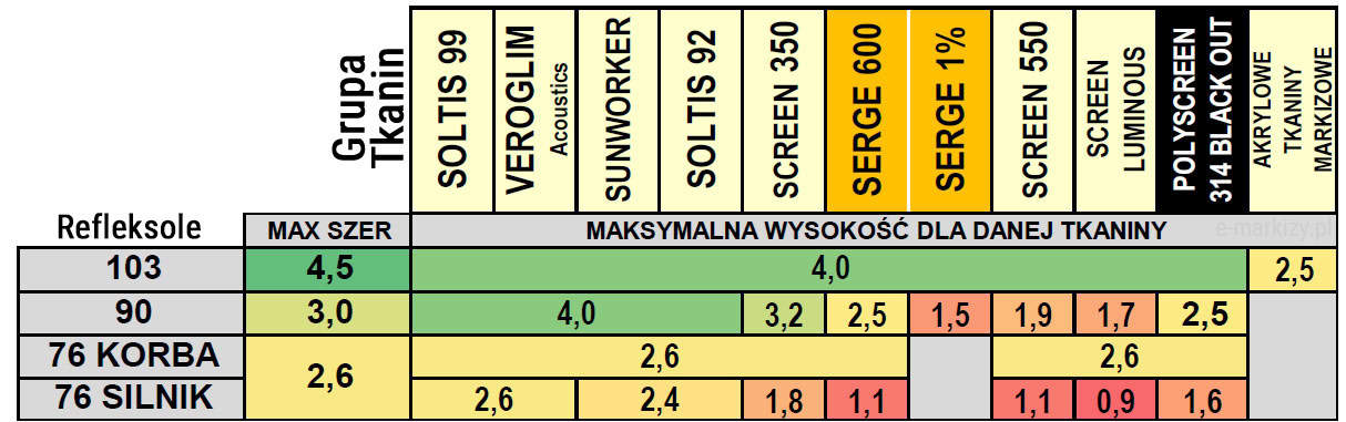 Maksymalne pole powierzchni tkaniny: 6,8 m2