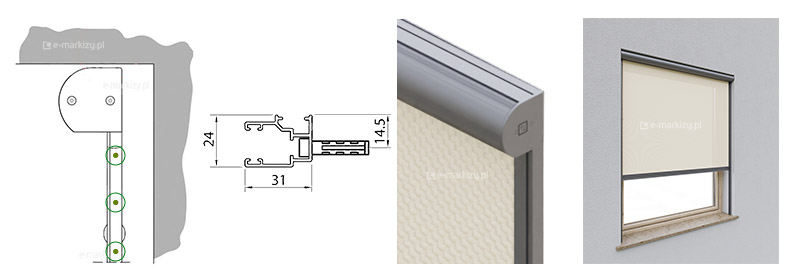 Prowadnice wąskie (G31) mocowane są bezpośrednio (bez uchwytów) do powierzchni bocznej wnęki okna. Aby zamocować prowadnice, należy przywiercić je w kilku miejscach i przytwierdzić do wnęki. Przy tym sposobie montażu, kaseta jest „samonośna”, tzn. kaseta przymocowana jest stabilnie do prowadnic i nie ma potrzeby mocować jej dodatkowo do podłoża.