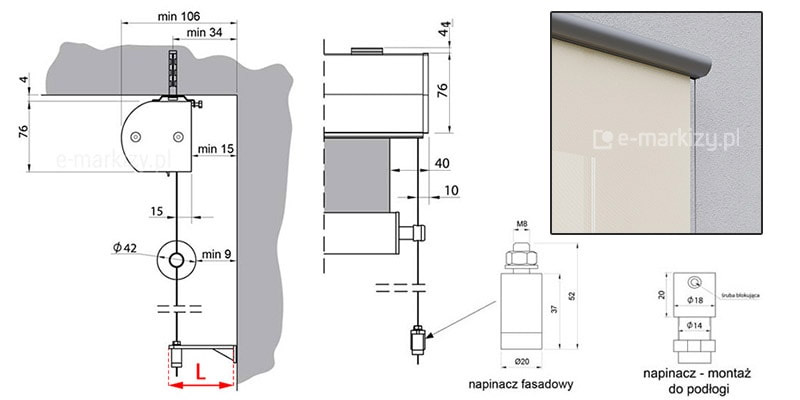 2. Prowadnice listwowe. Montaż bez uchwytów do ramy/ściany kaseta samonośna – Montaż na Zewnątrz i Wewnątrz