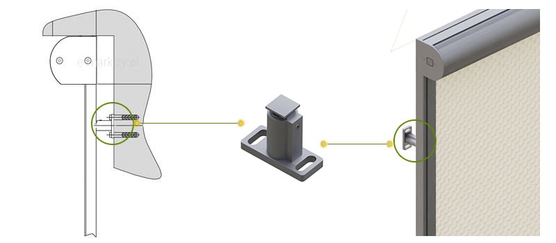 W tej opcji, prowadnice aluminiowe G31 montujemy do ramy okna/ściany (do powierzchni czołowej) na uchwytach mocujących.