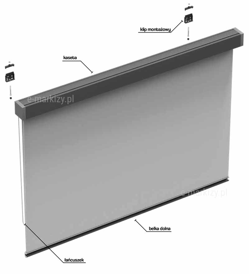 Refleksol łańcuszkowy 85SA Selt to lekka roleta wewnętrzna wolnowisząca o kompaktowych wymiarach. Maksymalna szerokość osłony to 2,2m, a wysokość 2,5m.