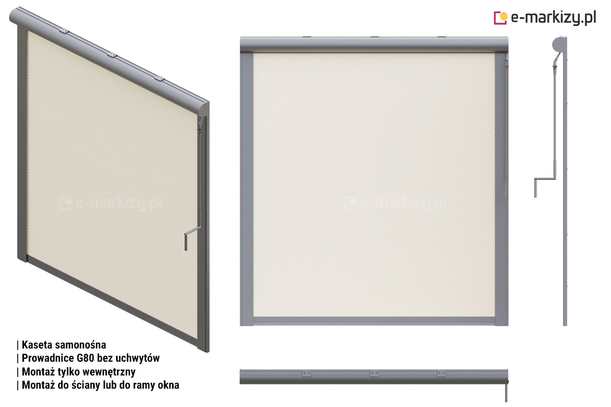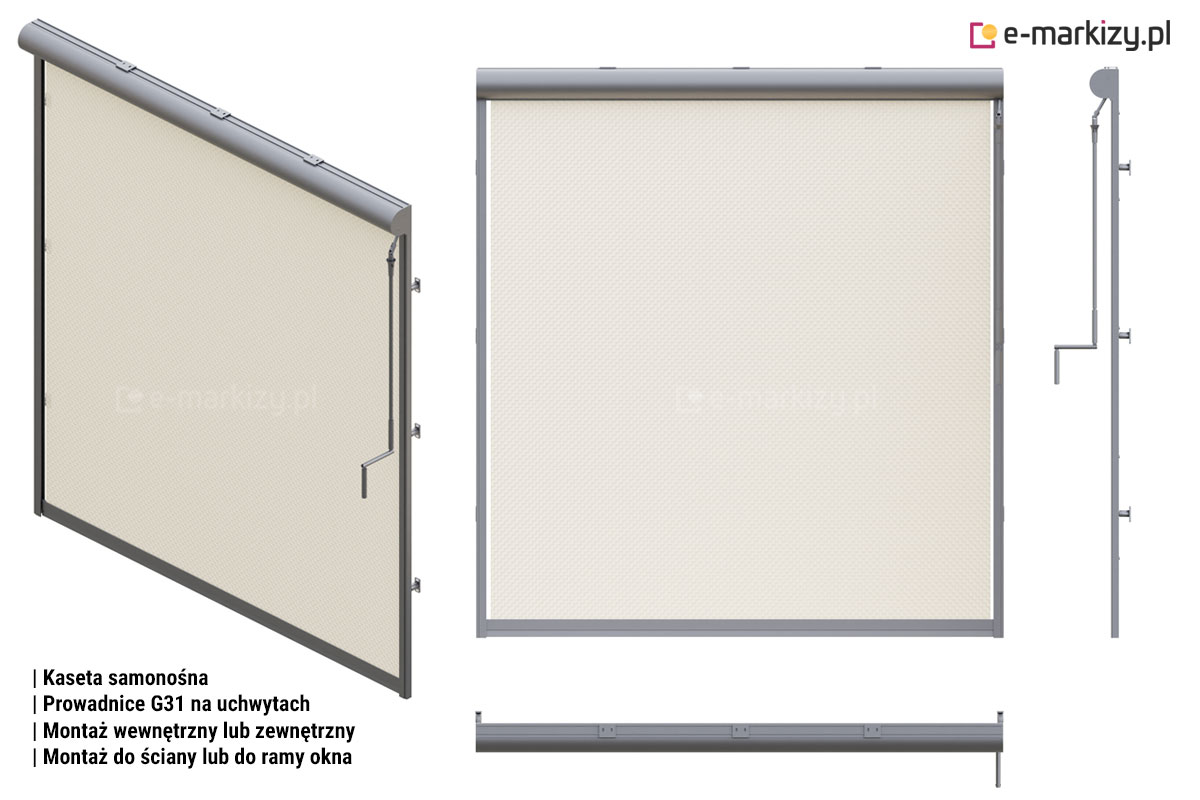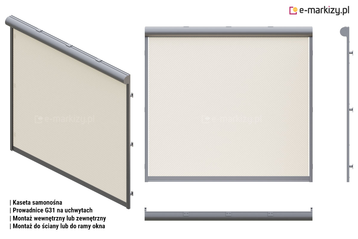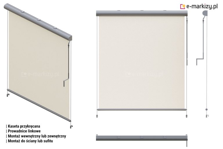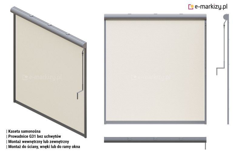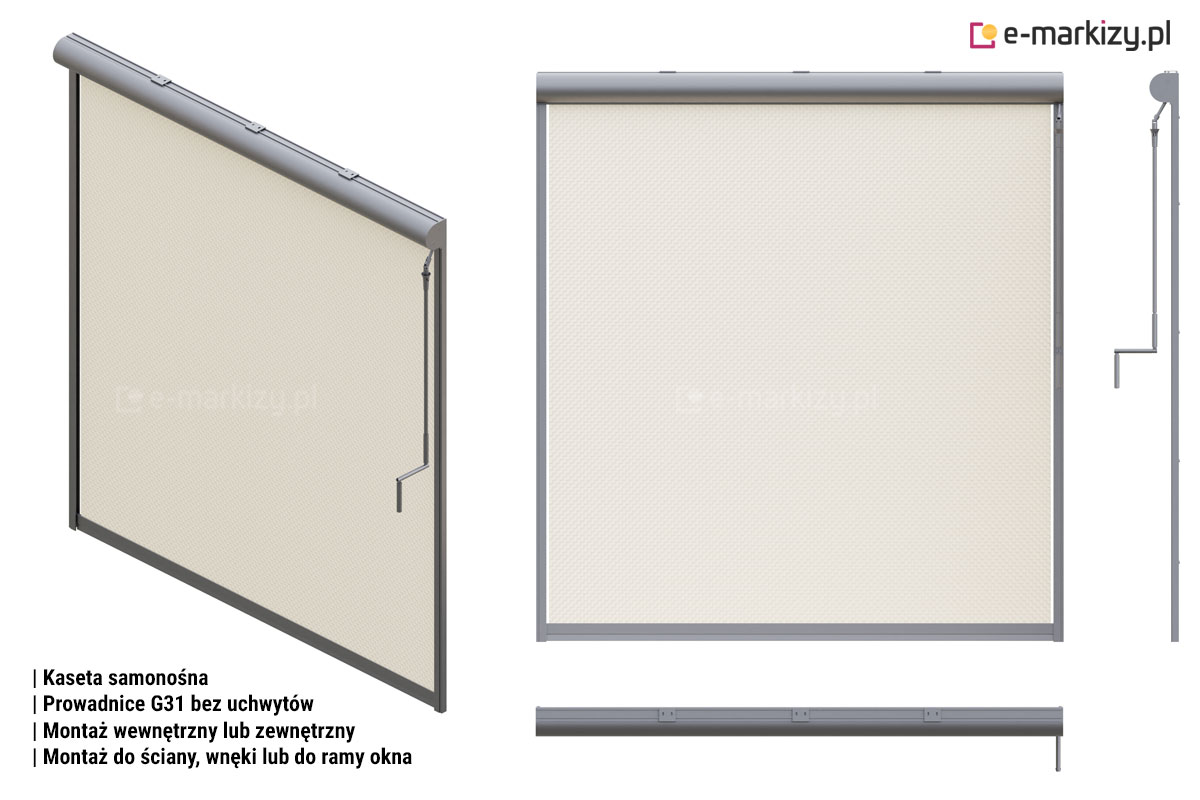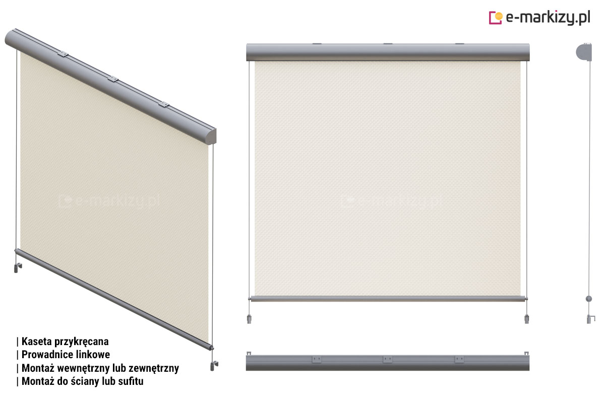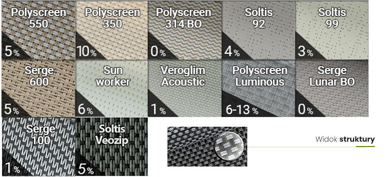 Szeroki wachlarz tkanin, pozwala na dopasowanie koloru rolety do architektury budynku oraz dobór odpowiedniego współczynnika przenikania promieni słonecznych. System wyposażony został w system naciągu tkaniny, który utrzymuje jej napięcie nawet na dużych powierzchniach. Tkaniny akrylowe to kolekcja stosowana głównie w markizach, tkaniny typu Screen są połączeniem PCV i poliestru, zależnie od wybranej grupy posiadają inne właściwości takie jak przepuszczalność światła czy dźwięku.