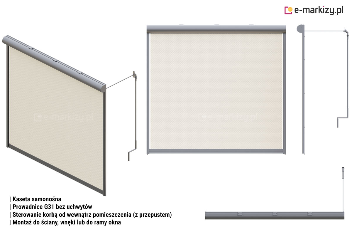 - Standardowo refleksol wyposażony jest w napęd ręczny, sterowany korbą (bez dopłaty)