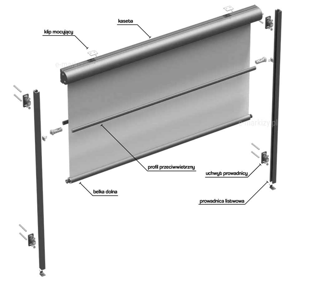 Prowadnice: Listwowe: G80 (wewnętrzna), GC30, GC30F, GC30FD, Linka fi 2,5 mm