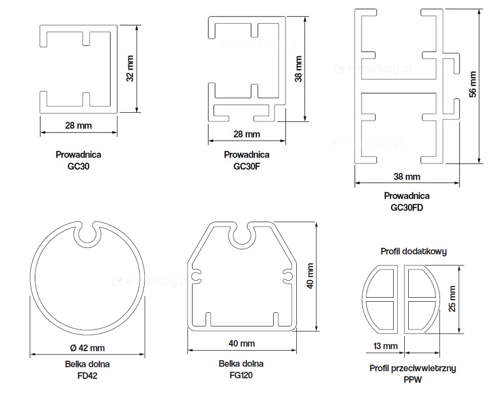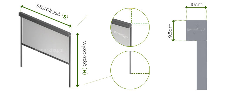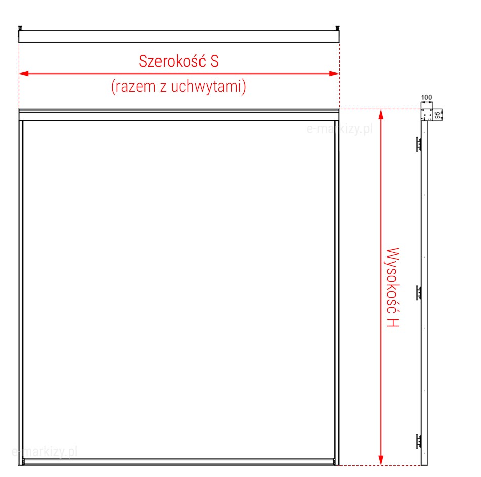 – Opcjonalnie profil antywind redukujący deformacje tkaniny pod naporem wiatru (przy szerokości do 3 m).