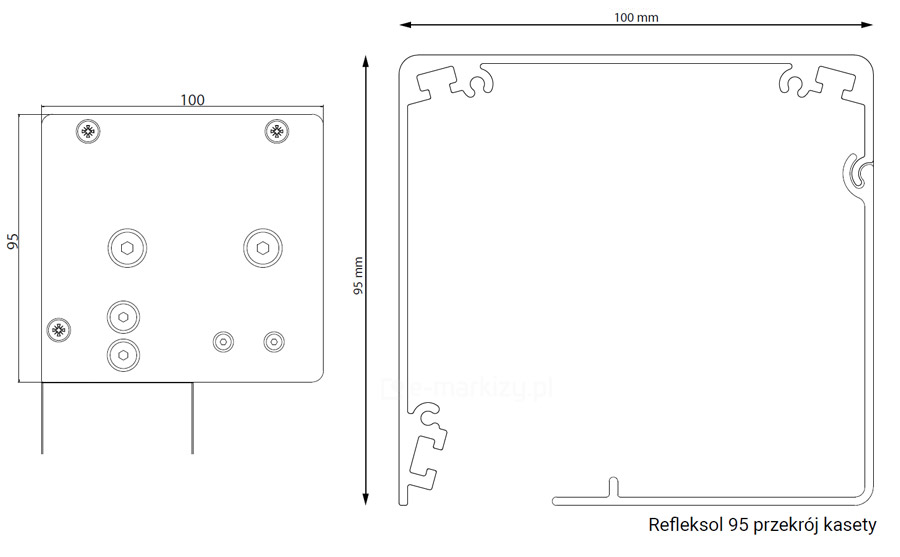 Refleksol 95 może być sterowany silnikiem elektrycznym. Przewód wyprowadzony jest na długość ok. 2mb z otworu umieszczonego z boku lub od tyłu kasety refleksola.