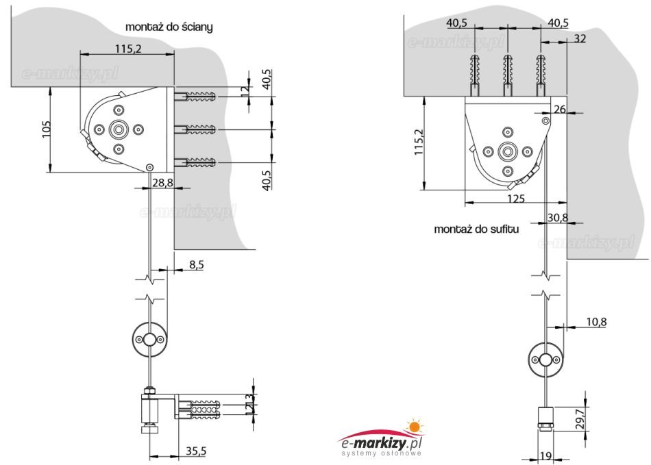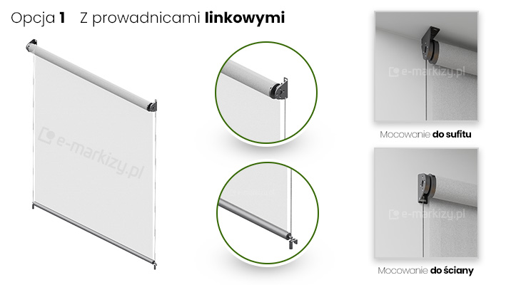 (montaż ścienny / prowadnice linkowe z kątownikami ściennymi)