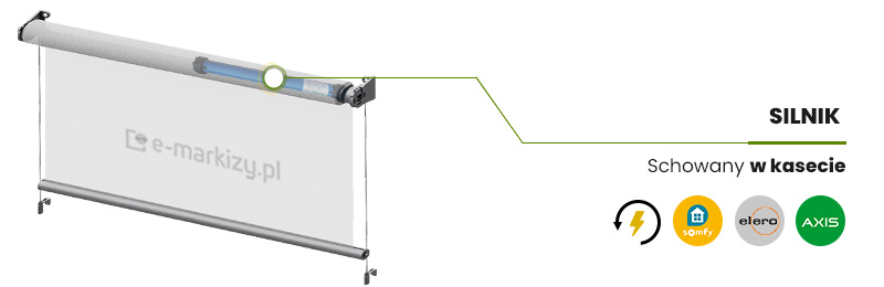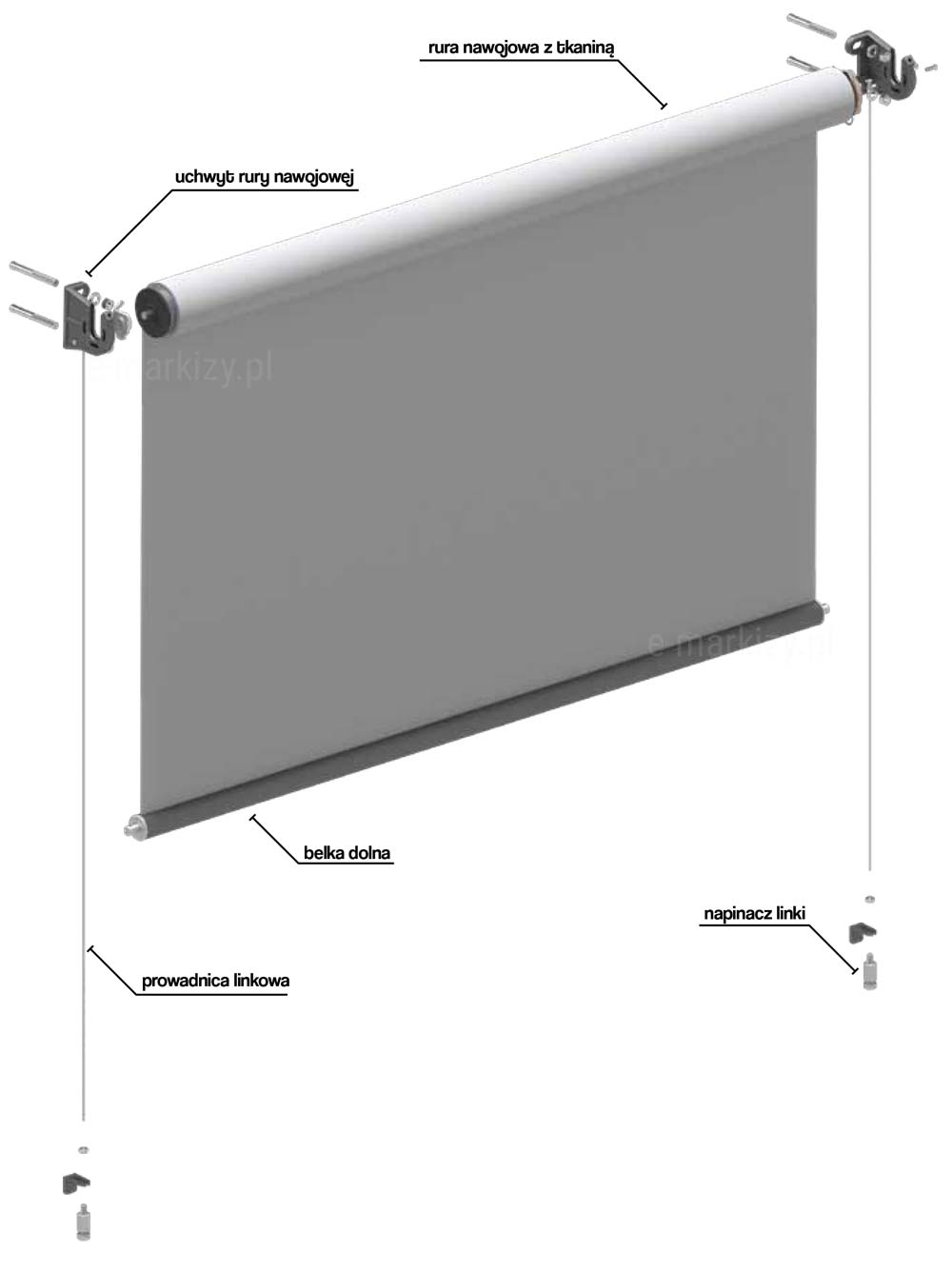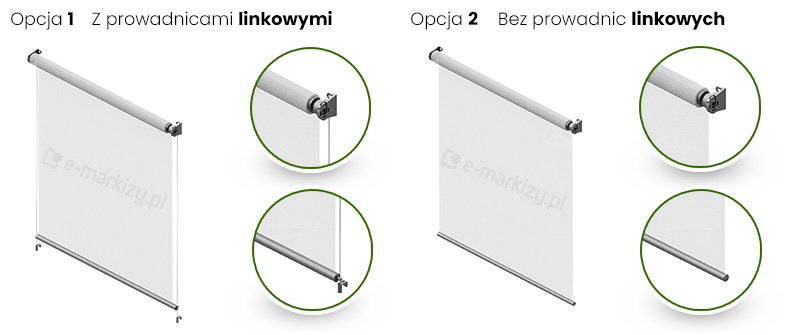 – Wyrób bezkasetowy z prowadnicami linkowymi (na zewnątrz) lub wolnowiszący (do wewnątrz)