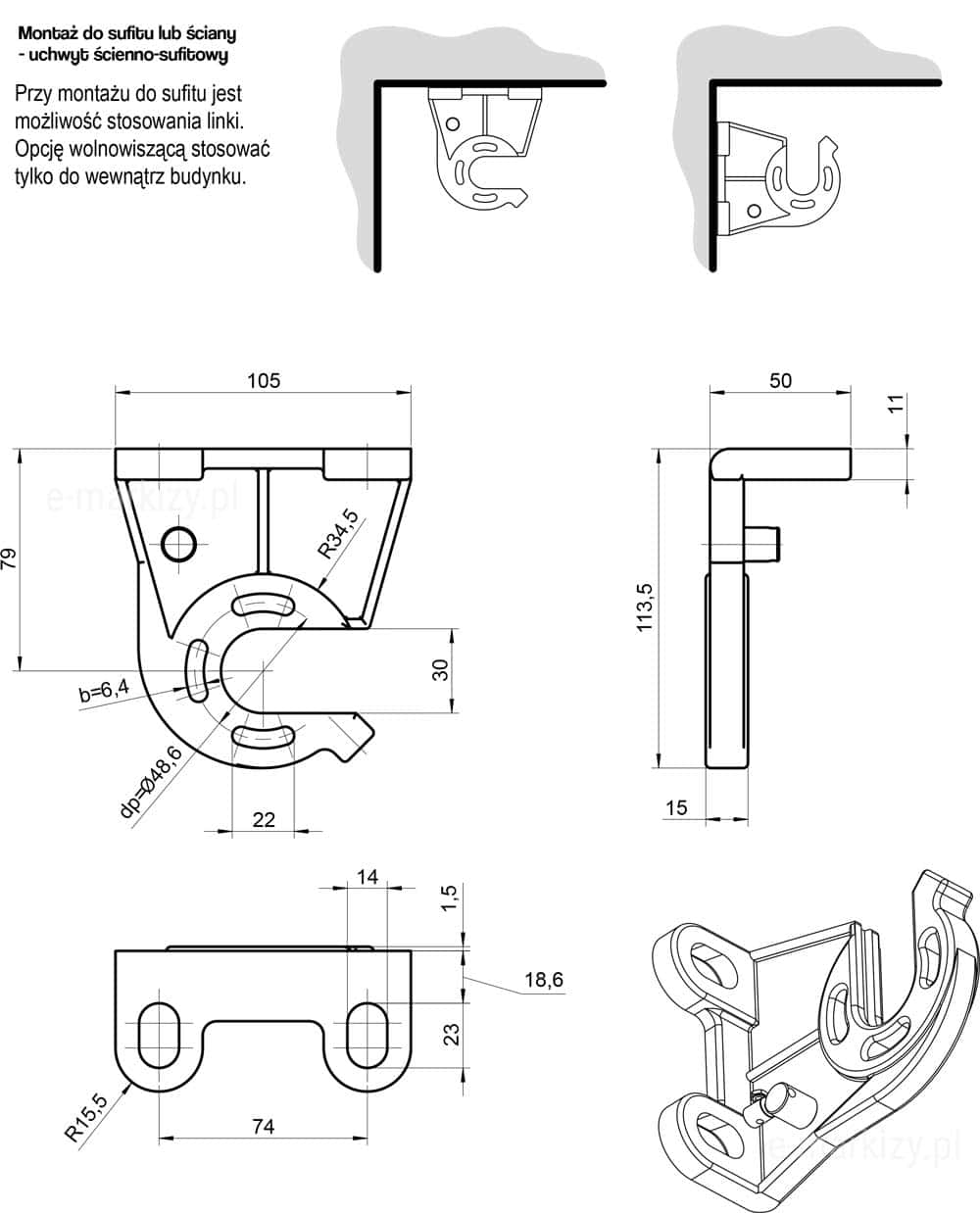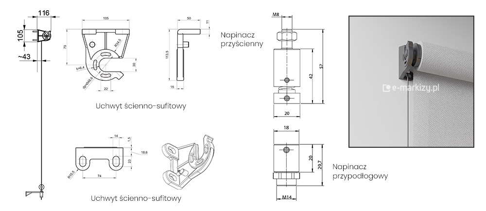 Refleksol XXL - Dane TechniczneRefleksol XXL - Dane Techniczne - Refleksol XXL Uchwyt ścienno-sufitowy, montaż refleksola do ściany, montaż refleksola do suftu, Refleksol XXL Komponenty refleksola, uchwyt rury nawojowej, napinacz linki, prowadnica linkowa, Refleksol XXL Belka nawojowa, rury nawojowe refleksola, prowadnica linkoweRefleksol XXL Selt wymiarowanie, pomiar refleksola, refleksole wymiary