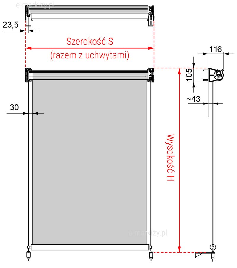 Szerokość S – jest to szerokość całkowita łącznie z uchwytami – do 400cm