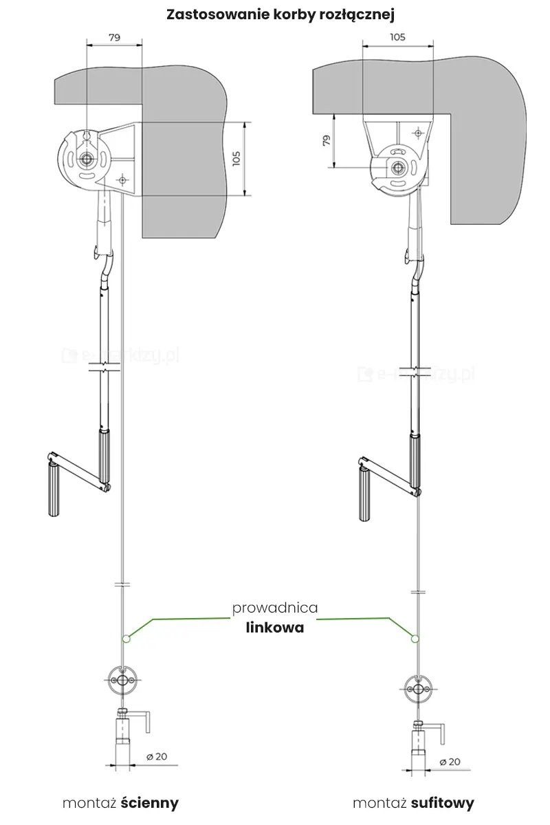 1. Montaż refleksola XXL z prowadnicami linkowymi
