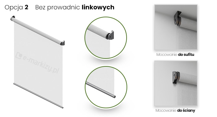 Refleksol XXL może zostać wyposażony w stalowe linki utrzymujące dodatkowo sztywność tkaniny lub być zamontowany jako osłona wolnowisząca, w takim przypadku tkanina napinana jest grawitacyjnie przez belke dolną. Uniwersalne uchwyty ścienno-sufitowe zapewniają dowolność w montażu refleksola do ściany lub do sufitu