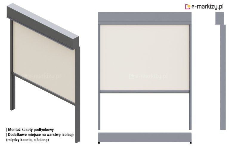 Refleksol Zip Box do zabudowy produkowany jest na wymiar. Maksymalna szerokość to 400cm a wysokość to 400cm. Do zamówienia lub wyceny podajemy zawsze całkowity zewnętrzny wymiar osłony, łącznie z kasetą.